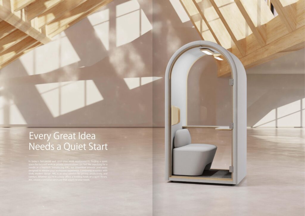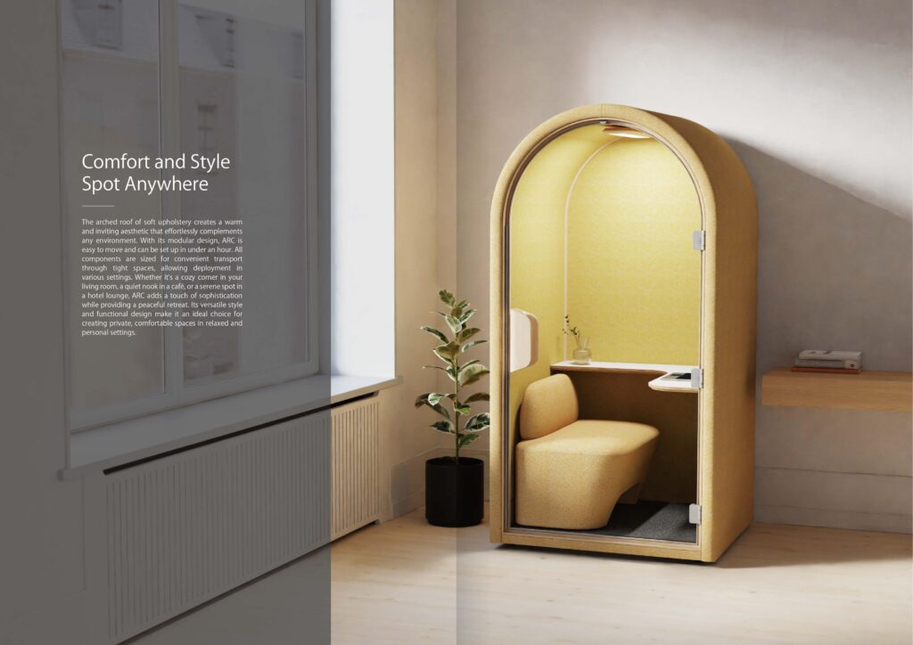 Enter Hecor‘s latest innovation, ARC Pod, an acoustic pod designed to create a peaceful oasis amid the hustle and bustle.