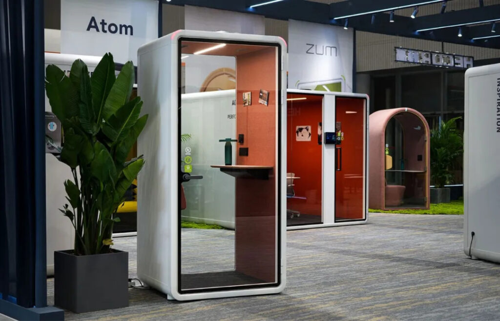 During the exhibition,  HECOR Office Pods booth remained bustling with high popularity and unwavering enthusiasm. Merchants, designers, and professional visitors from around the world flocked to the booth, stepping inside to personally experience the “close the door, enjoy instant quiet” office experience.