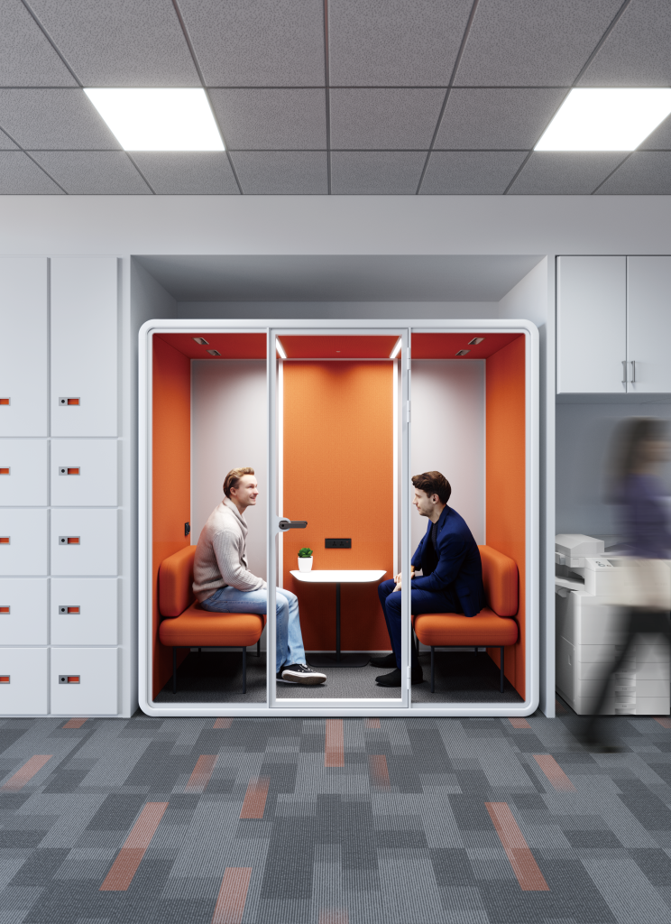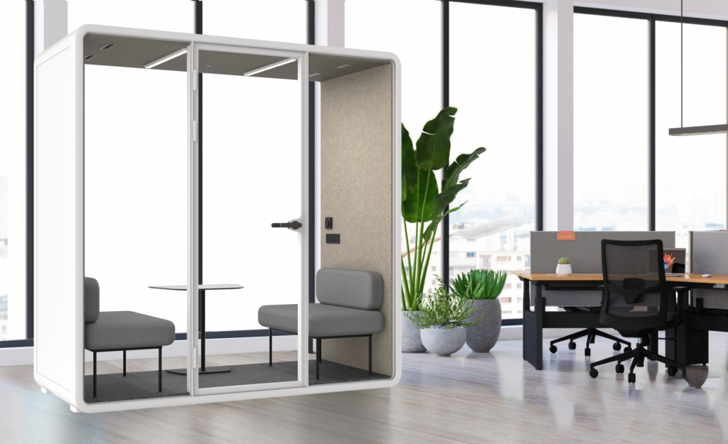 Customizing your office booth to match your brand and uplift your office space is a fantastic feature, blending style with functionality