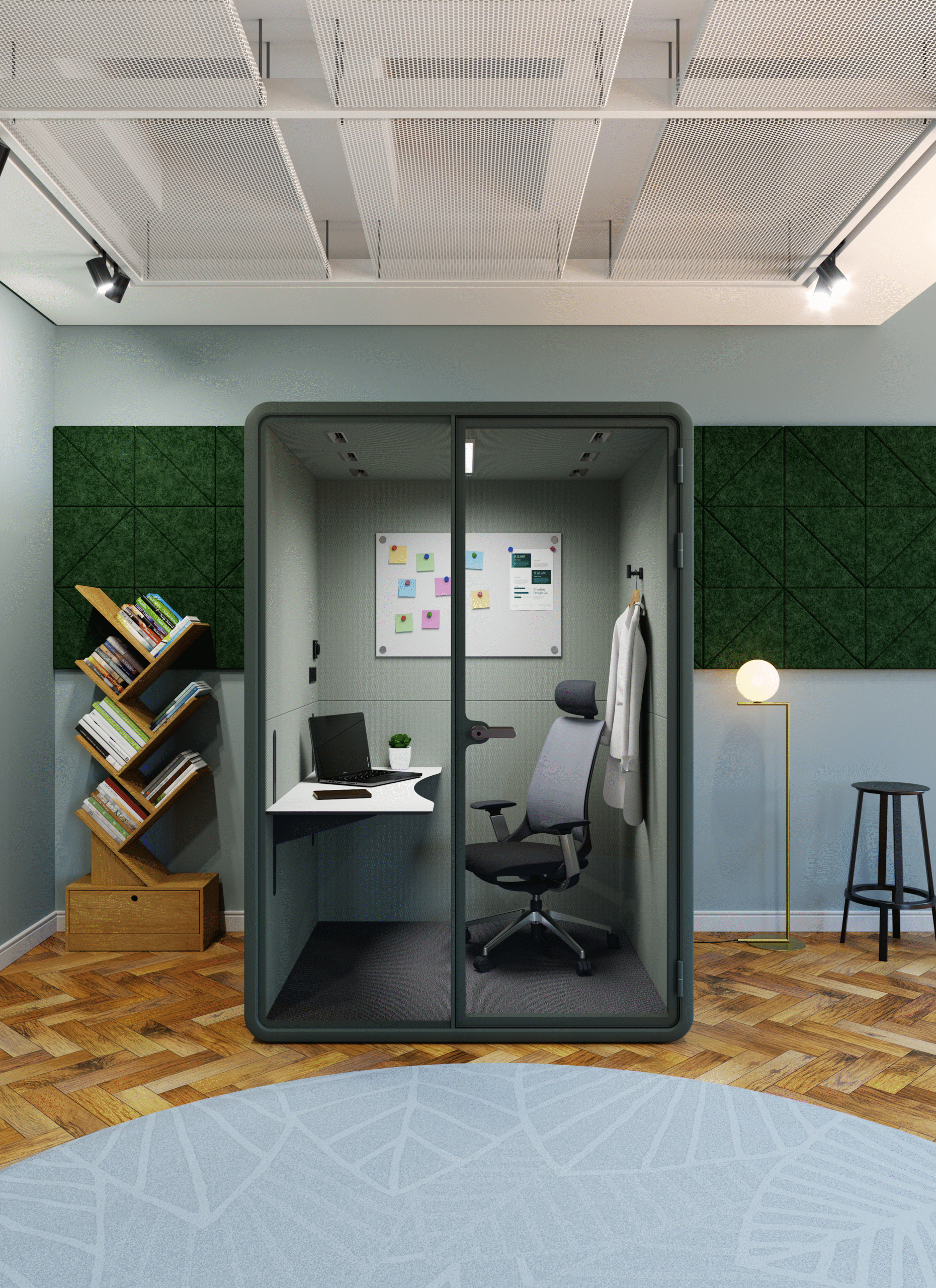 streamlining your work experience and making it more convenient and barrier-free The office pod has wheel, so you can move it easily in your building