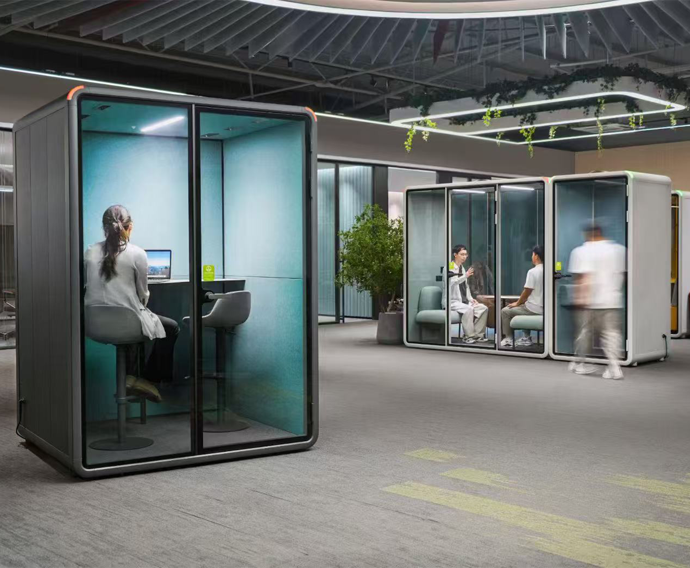 With its spacious dimensions of 2.2 ㎡, Model M offers a flexible and adaptable space that caters to your various needs, Whether you require a personal workstation, a conversation room, or a quiet read-ing nook, the M booth provides the perfect environment for focused work, private meetings, or relaxation,lt is an ideal acoustic solution for businesses of all sizes, providing a cost-effective option for creating dedicated spaces within the office.